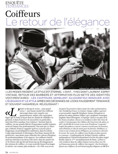 Le style et la classe “Guillaume Fort pour l'homme” mis en avant sur l'article “Le retour de l'élégance” chez les coiffeurs dans “l'Eclaireur PLUS”... Merci à Eve Laborderie!